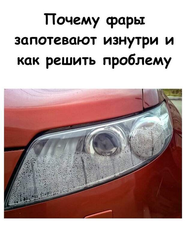 Поскольку корпус фары не может быть полностью герметичным (иначе он лопнул бы при нагреве лампы), небольшое количество влаги проникает внутрь и конденсируется на стекле или рассеивателе.