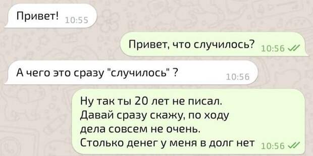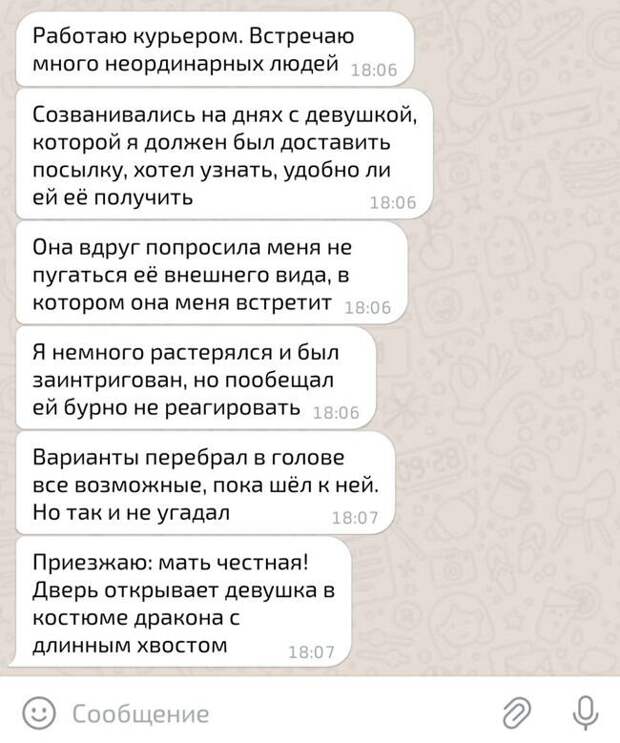 От обсуждения гениальных идей до описания жизненных курьезов, от странных размышлений до весёлых высказываний, которые смешат собеседника - это и многое другое можно встретить в фрагментах из переписок. Мы подобрали для вас несколько самых смешных и неожиданных. Они наверняка вызовут улыбки на ваших лицах!