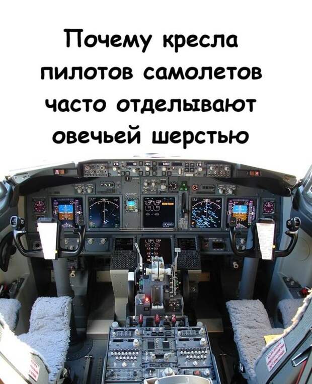 Кресла в кабине пилота выглядят иначе, чем в салоне. Они массивнее, функциональнее, и часто кажутся пушистыми. В эконом-классе сейчас правит бал экокожа, в бизнесе — натуральная кожа или дорогой текстиль, а в кабине — овчина. Зачем пилотам, управляющим многотонными лайнерами на высоте 10 километров, кусок овечьей шкуры под спиной?