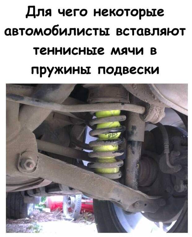Новые пружины или усиленные отбойники стоят недёшево, а мячики — почти бесплатно. Так что это своеобразный "гаражный лайфхак".