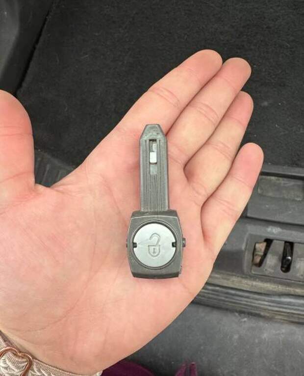 11. Нашел это под сидением водителя. Пластиковая деталь в форме ключа. Серая кнопка нажимается, но ничего не делает. Что это?