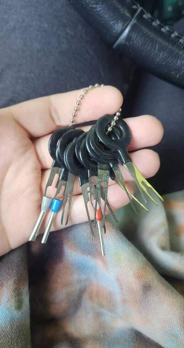 Этими инструментами злоумышленники могут отсоединять сигнализацию или чтобы аккуратно отключить разъёмы замка зажигания или блоков управления.7. Что это я нашла на полу в автомобиле? Не знаю даже, связано это с машиной или что-то совсем другое