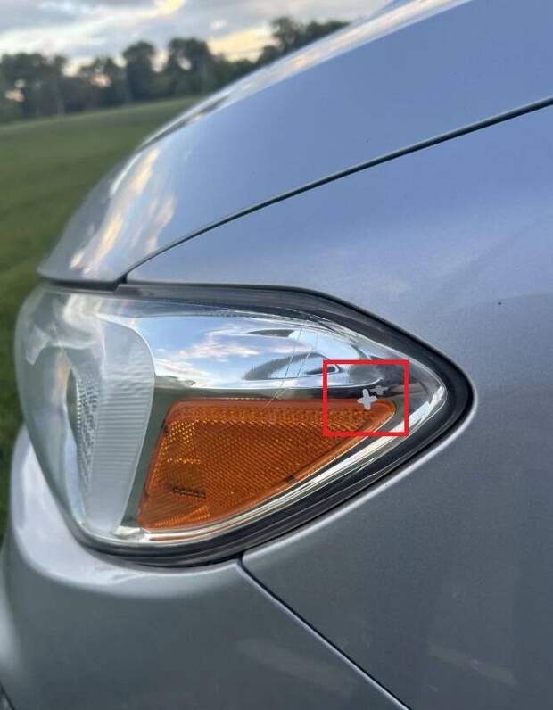 13. Заметил этот маленький белый крестик на левой фаре своего авто, но не помню, откуда он мог взяться. Кто-то знает, что это может быть?