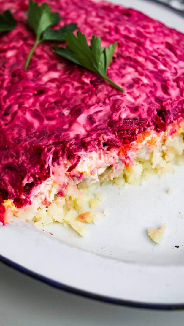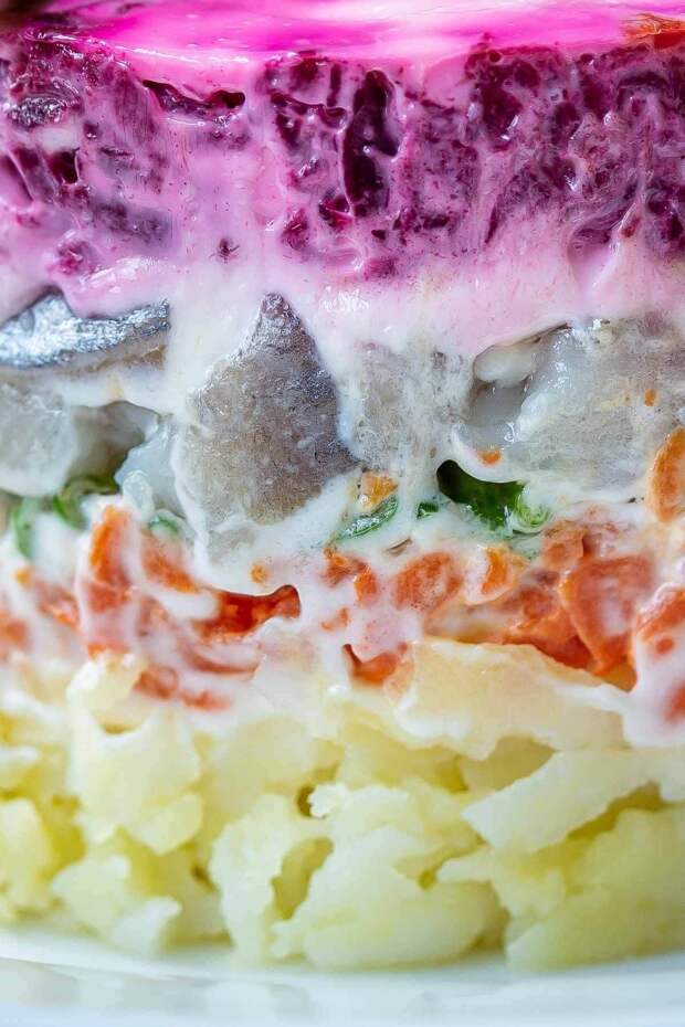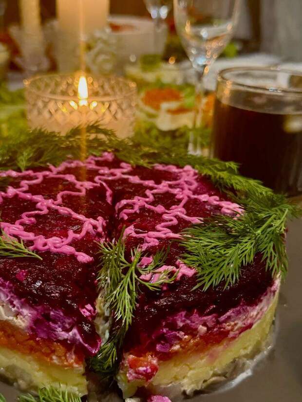 Проанализировав ситуацию, Анастас понял: мужики пьют много, а закусывают мало. Алкоголь был в избытке, а доступных и сытных закусок — нет. Повар Аристарх блестяще решил проблему, создав простой, но гениальный салат: на ломтики сельди клались слои отварного картофеля, моркови, лука и свеклы, все это промазывалось провансалем (майонезом).
