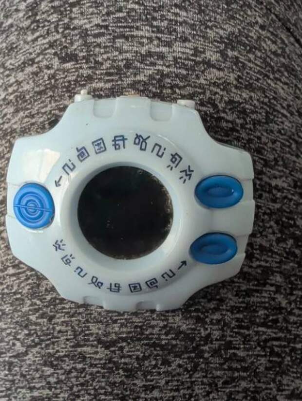 Это часть от коллекционной электронной игрушки с экраном и кнопками. Она может имитировать функции из аниме: тренировать дигимонов, проводить битвы, собирать данные, иногда подключаться к другим устройствам.