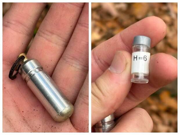 8. Нашел в лесу эту металлическую капсулу с пластиковой внутри.