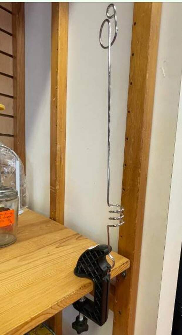 9. Эта штука была в комиссионке среди кухонных приборов. Есть крепление, а металлическая спиральная часть крутится в разные стороны. Что это?