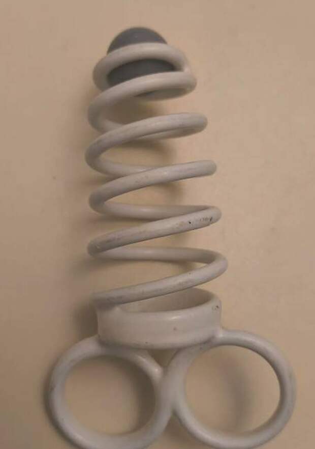 2. Найдено в запасах для рукоделия/шитья: белая полугибкая спиральная пружина с маленьким серым шариком, застрявшим на одном конце, и двумя кружками на другом. Что это?