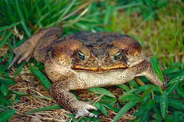 Ядовитая жаба-ага надулась в оборонительной позе, wiki
