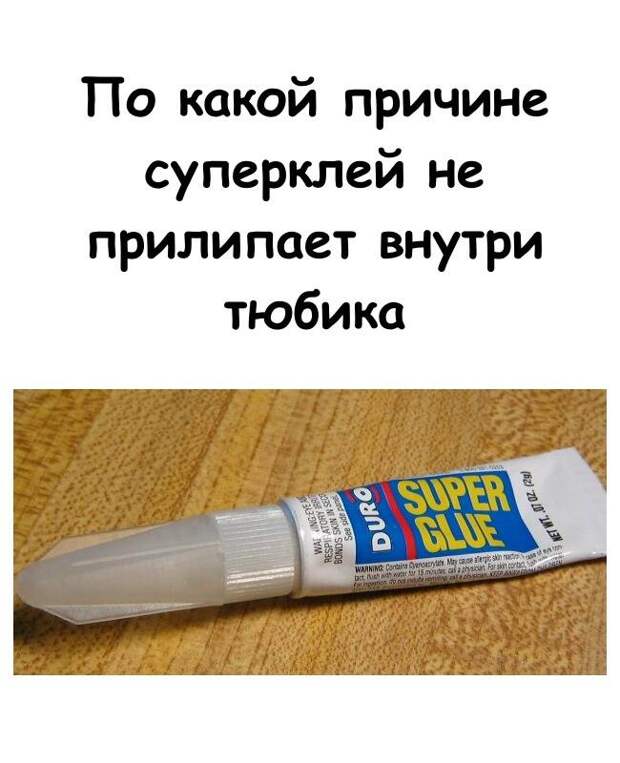 Суперклей — вещь почти магическая. Снаружи он склеивает пальцы быстрее, чем вы успеваете моргнуть, а внутри тюбика месяцами остаётся жидким. Вот вы когда-нибудь задумывались, почему так? Кажется, что это парадокс, но оказывается, что всё дело в химии. Нам стало интересно, и мы решили разобраться.