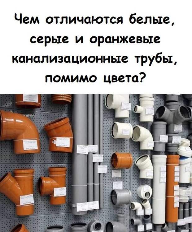 Даже если вы далеки от сантехники, наверняка замечали, что канализационные трубы бывают разных цветов: белые, серые, оранжевые, черные… Возникает вопрос: это просто дизайн или за цветом скрываются реальные различия в свойствах?