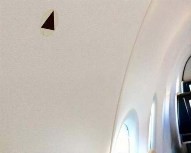 Вы когда-нибудь, устроившись в кресле пассажирского лайнера в предвкушении полёта, замечали странную деталь? Где-то посередине салона, над парой-тройкой иллюминаторов, приклеены загадочные чёрные треугольники.
