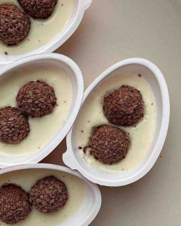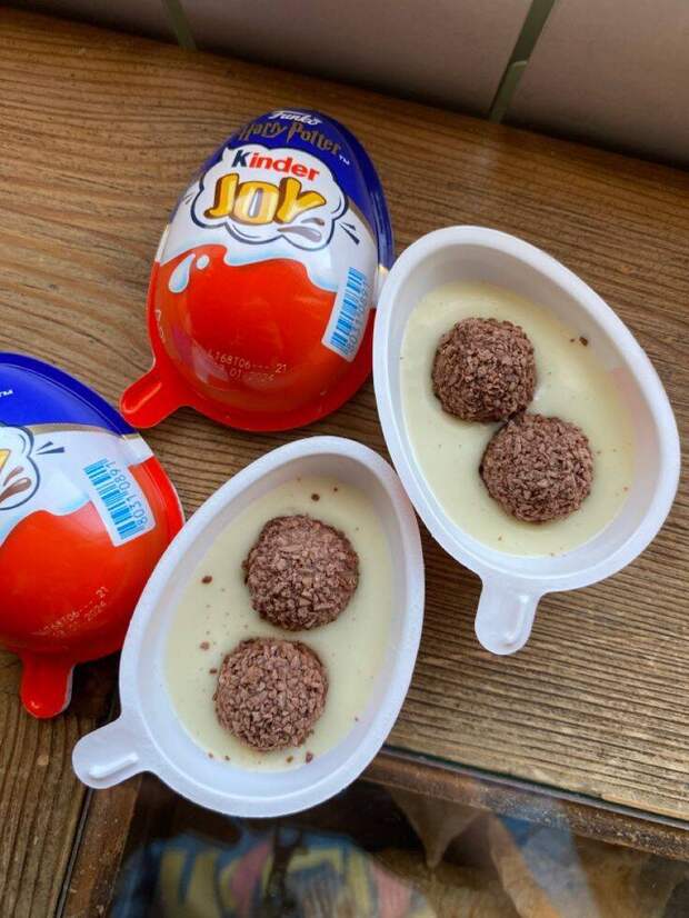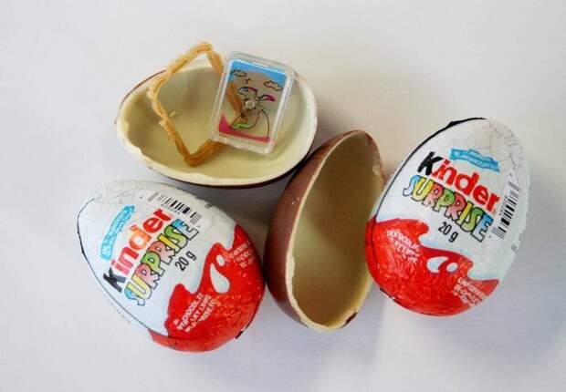 Это не яйцо, а пластиковый контейнер, стилизованный под него. Он аккуратно разделен на две половинки: в одной — нежный молочный крем с шариками из вафель, а в другой — та самая заветная капсула с игрушкой. Гениально и просто! Управление по санитарному надзору за качеством пищевых продуктов и медикаментов (FDA) осталось довольно: закон не нарушен, несъедобный элемент не контактирует с пищей.
