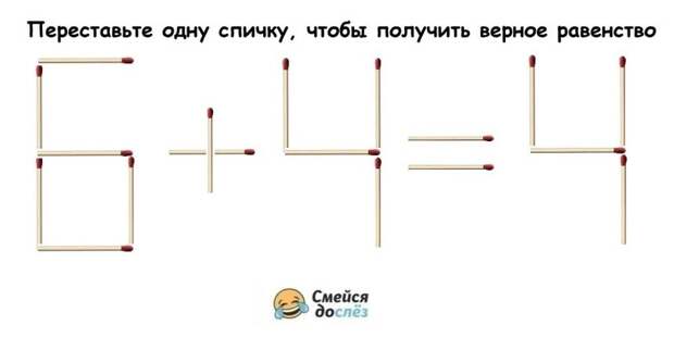 А далее последнее и самое интересное задание со спичками.Переставьте одну спичку, чтобы получить верное равенство.