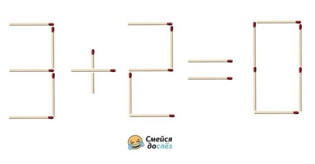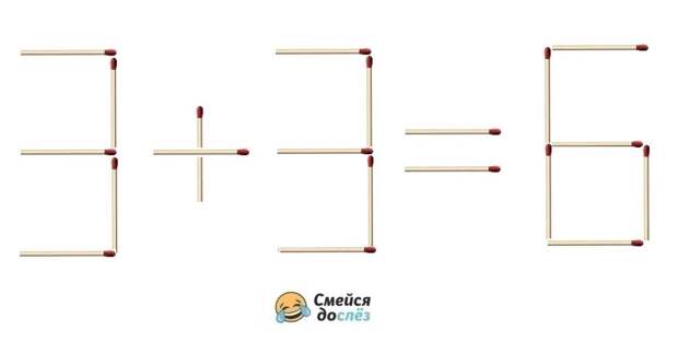 Итак, переставим одну спичку в цифре 2, изменив её на 3. А цифру ноль превратим в цифру 6. Тогда равенство станет таким: